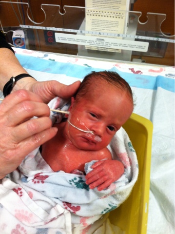 It's hard to believe they're 3 weeks old tomorrow. Despite a lot of routine every three hours when they're fed and have their temperatures taken, each day holds new adventures and exciting news. They are both having fewer Brady episodes and are consistently putting on weight. Brooklyn is past her birth weight and weighs in at a hefty 4 lbs 5 oz. Madison now tips the scales at 3 lbs 12 oz and continues to close the weight gap as she gets better at bottle feeding.